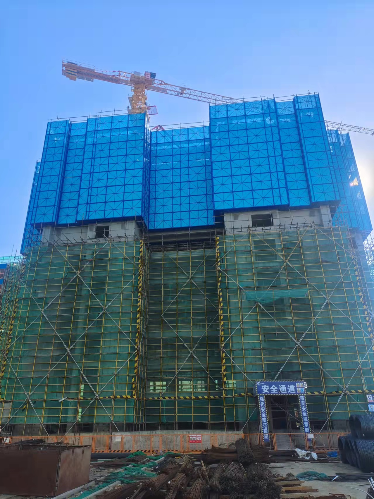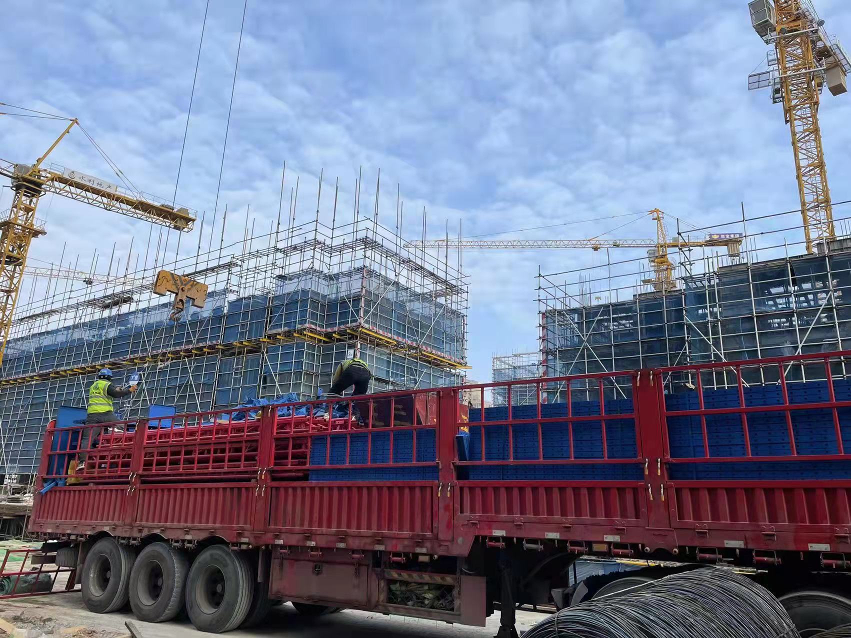 水沐韶华二期工程8#爬架设备进场,准备进行组装
